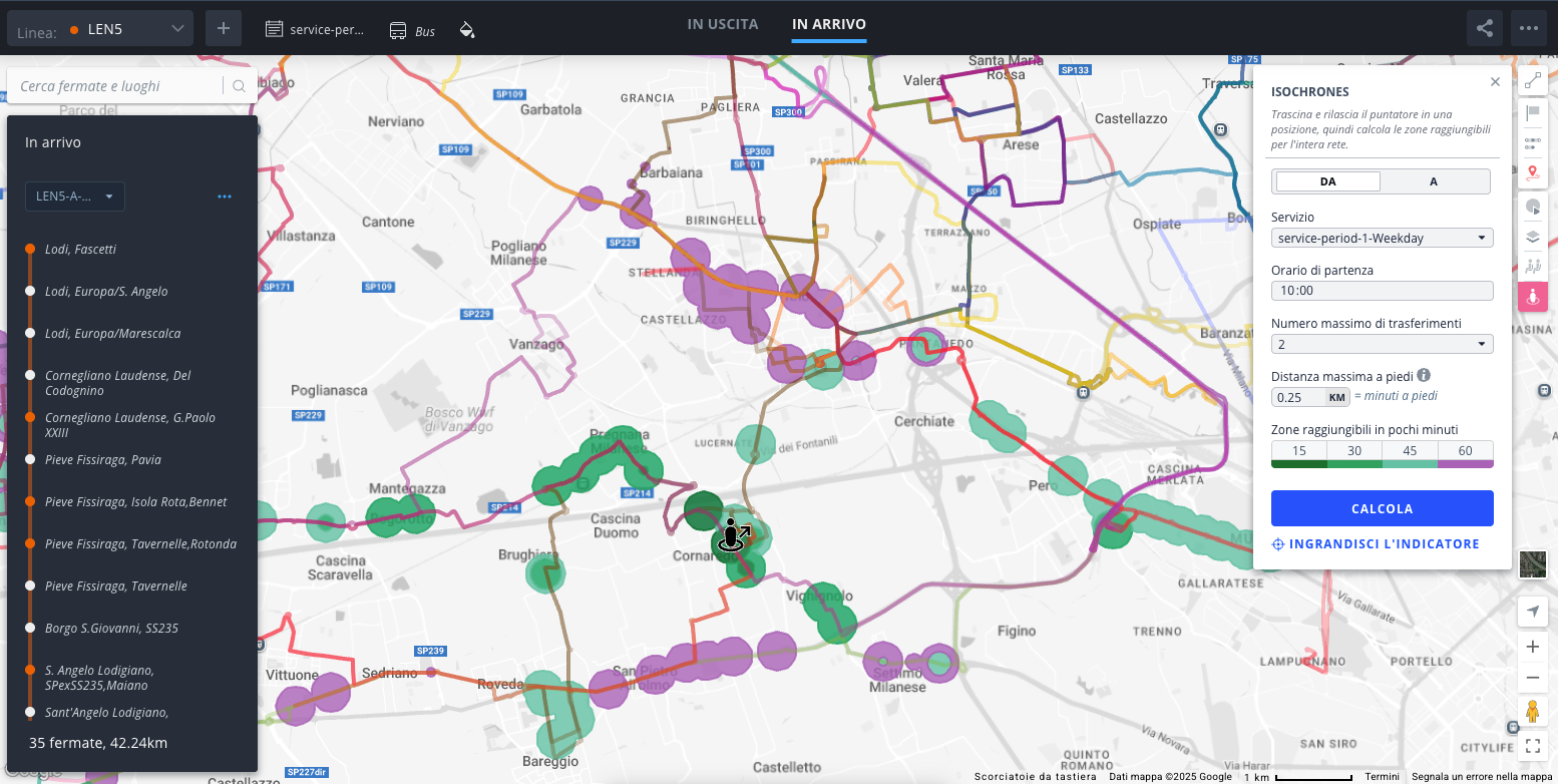 - Confrontare e ottimizzare diversi scenari di servizio, inclusi orari, percorsi e coincidenze.