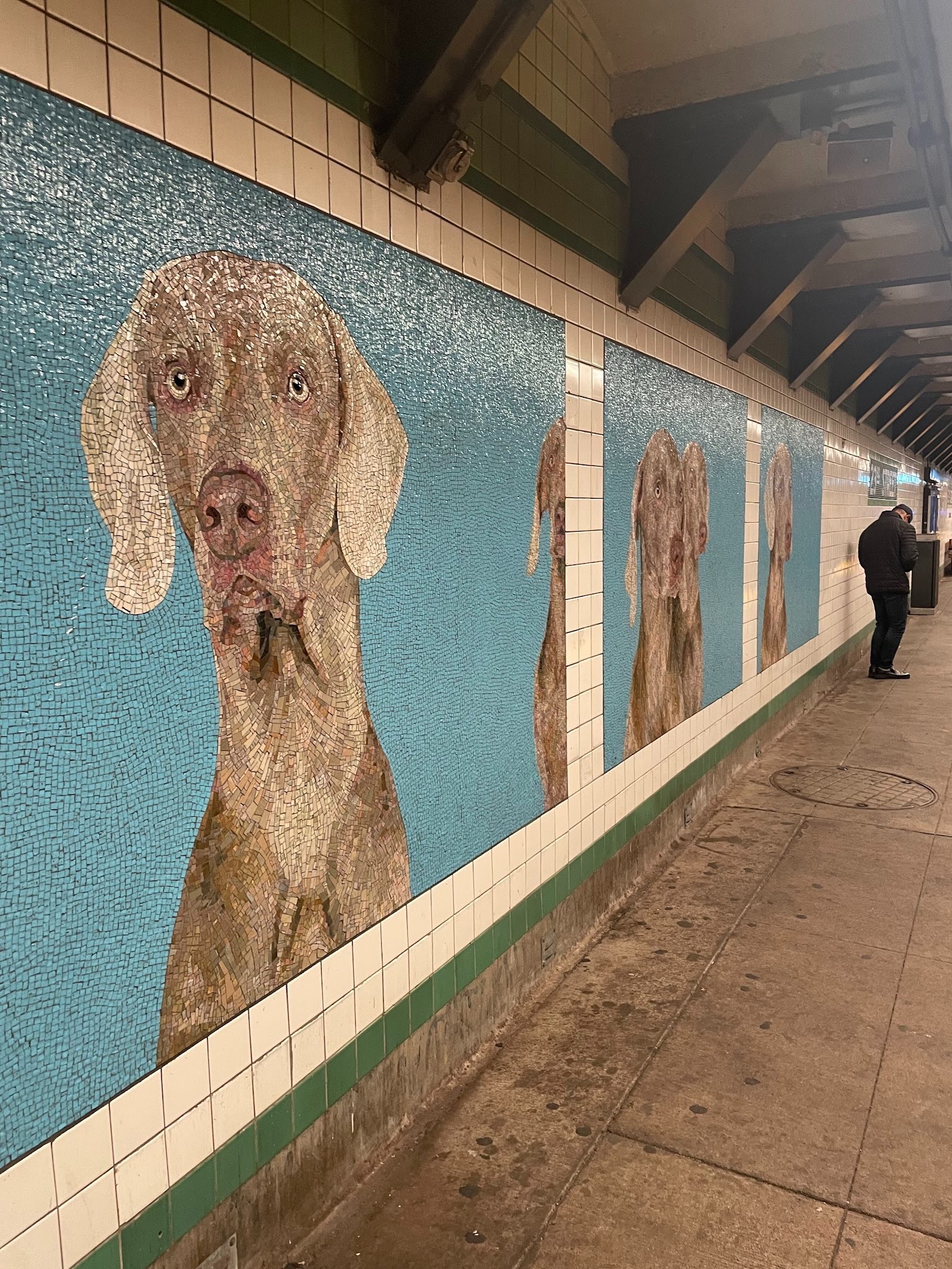 “New York runs on the MTA! Thank you for getting us where we need to go safely, quickly and even sometimes artfully! I don’t pass through or get off at this subway station often, but when I do the mosaic Weimaraners always bring me joy and brighten my day.”