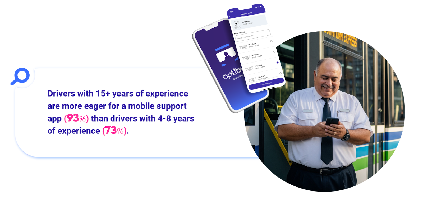 How to Support Them: Younger drivers aren't just looking for convenience; they are looking for modern standards. 84% of all drivers say mobile tools are valuable, but for Gen Z, they are essential. Using public transport software like Optibus allows for self-service shift swaps and preference-based bidding. When a driver can manage their work life on a smartphone, the job feels modern and empowering.