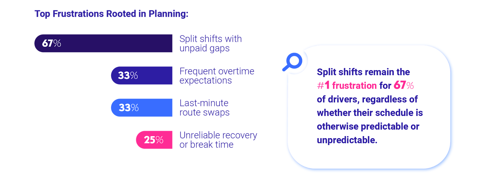 Once a mid-career driver works 6 or more unscheduled overtime shifts a month, the risk of them leaving triples. This is made worse by split shifts, which 67% of drivers say is their number one frustration. They aren't leaving because they don't like driving; they are leaving because the schedule is hurting their family life.